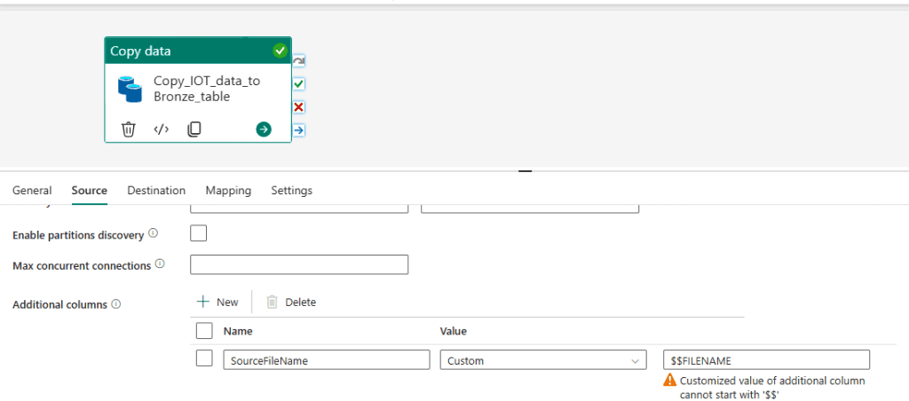 • Destination: Bronze_TempReadings table in same lake House.